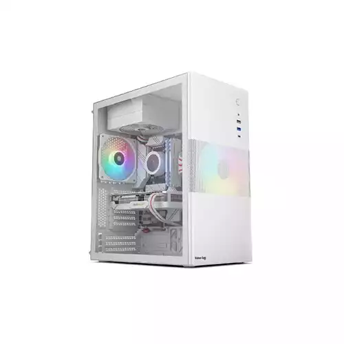 Value-Top T863 ARGB Micro ATX Case with 200W PSU (White) is a sleek, compact, and modern mini-tower chassis designed for PC builders who value aesthetics, functionality, and affordability. Ideal for home or office setups, this Micro ATX case combines elegance with practicality, offering a white exterior paired with a tempered glass left side panel, allowing users to showcase internal components and RGB lighting. The integrated ARGB lighting system provides vibrant, customizable illumination, giving your PC build a dynamic and visually appealing look that stands out on any desk. Designed to support Micro-ATX motherboards, the T863 White is perfect for compact builds while still accommodating standard PC components. It comes bundled with a 200W PSU, providing sufficient power for basic to mid-range systems and allowing beginners to start building immediately without purchasing an additional power supply. The front I/O panel includes 1 x USB 3.0 and 2 x USB 2.0 ports, ensuring easy access to peripherals, external storage, and accessories for a seamless user experience. Despite its compact size, the T863 White offers thoughtful internal design and efficient airflow to keep components cool, even without liquid cooling support. It accommodates standard air cooling solutions and includes ample space for cable management to reduce clutter, improve airflow, and maintain a clean internal setup. Expansion options are available for additional drives and PCI cards, making the case versatile enough for future upgrades. While the case itself does not come with a warranty, the included PSU carries a 2-year warranty, ensuring peace of mind for power supply reliability. The T863 White is lightweight, sturdy, and designed to support Micro ATX components securely, making installation simple for both beginners and experienced PC builders. Its mini-tower form factor ensures it fits neatly in smaller spaces without compromising functionality, making it an ideal choice for those looking to save space while building an attractive and efficient PC setup. Overall, the Value-Top T863 ARGB Micro ATX Case with 200W PSU (White) is perfect for gamers, content creators, and general users seeking a combination of style, durability, and functionality. Available at the best price in Bangladesh from Techland BD, this case provides a solid foundation for any PC build, complete with ARGB aesthetics and essential features to enhance your computing experience. Purchase from Techland BD, the trusted retailer known for authentic products, competitive pricing, and reliable service.
