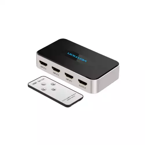 VENTION AFFH0 3 In 1 Out 4K HDMI Switcher is a high-quality and efficient solution for managing multiple HDMI devices through a single display. This compact and durable switcher allows users to connect up to three HDMI input sources and switch seamlessly between them while using only one HDMI output. Whether you have a gaming console, laptop, streaming device, or Blu-ray player, this switcher ensures a smooth and effortless transition between devices. With 4K resolution support at 30Hz, the switcher delivers crisp, high-definition visuals, ensuring an excellent viewing experience. The gold-plated connectors enhance signal transmission stability, minimizing latency and video disruptions. It is also equipped with DTS and Dolby support, offering superior audio clarity and surround sound for immersive entertainment. Constructed from a combination of aluminum alloy and ABS, the VENTION AFFH0 HDMI Switcher ensures durability and heat dissipation, prolonging its lifespan and performance. It features HDMI 1.4 compatibility, making it suitable for various modern devices while also supporting HDCP pass-through. The device operates using a DC 5V/1A power supply, ensuring stable functionality. The VENTION AFFH0 HDMI Switcher is lightweight and easy to install, making it ideal for home entertainment setups, gaming environments, and professional presentations. For customers in Bangladesh, this premium HDMI switcher is available at Tech Land BD, a reliable destination for authentic tech accessories. Upgrade your multimedia setup today and enjoy a hassle-free HDMI switching experience with the VENTION AFFH0 3 In 1 Out 4K HDMI Switcher from Tech Land BD!