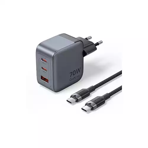 Vention FEXH0-EU 70W GaN USB-C+C+A Charger is a high-performance fast-charging solution, now available in Bangladesh at Tech Land BD at the best price. Powered by advanced GaN (Gallium Nitride) technology, this charger offers higher efficiency, reduced heat, and a more compact design compared to traditional chargers, making it ideal for both home and travel use. Whether you need to charge a MacBook, iPad, Samsung Galaxy, iPhone, or other USB-powered gadgets, this charger provides reliable and efficient performance. For added convenience, it comes with a 1-meter USB-C to USB-C cable, ensuring you can start charging your devices right out of the box without needing any extra purchases. The sleek gray finish and EU plug design make it modern, practical, and suitable for daily use at home, office, or while traveling. Built with comprehensive safety features, it protects against overcurrent, overvoltage, overheating, and short circuits, giving you peace of mind while charging valuable devices. Its versatile compatibility and powerful performance make it an essential accessory for users with multiple devices. Backed by Vention’s trusted quality, the FEXH0-EU 70W GaN Charger combines speed, safety, and convenience in one compact package. Get yours today at Tech Land BD and enjoy the best price in Bangladesh for this premium charging solution designed for modern tech users.What is the maximum power output?