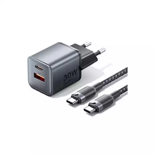 Vention TZFEWH0-EU 2-Port USB (C + A) 30W GaN Charger - Gray in Bangladesh