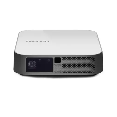 Enjoy your video games and multimedia content on a big screen with the short-throw ViewSonic M2e Full HD Portable Projector. Its 1000 lumens of brightness can produce images up to 100" diagonal in moderately lit rooms, and it's compact. Shorter throw lens project up to 100-inches from 8-feet 9-inches. Thanks to a built-in auto-focus feature, as well as horizontal and vertical keystone correction It s quick and easy to set up. Enjoy a crystal-clear image no matter where you place your projector. The M2e has dual 3W Harman Kardon speakers built-in to eliminate the need for external speakers, simplifying its ease of transport and setup. ViewSonic Cinema SuperColor+ technology delivers 125% of Rec.709 color accuracy and HDR content support that produce incredibly vivid and lifelike colors for a fuller, more immersive viewing experience. It also has onboard HDMI, USB Type-A, and USB Type-C ports, plus a microSDXC card slot, enabling you to project from multiple types of source devices. Wi-Fi and Bluetooth connectivity is built-in, so you can stream from your compatible phone or tablet. Bluetooth connectivity also allows pairing with compatible headphones or speakers for added versatility. This projector uses solid-state LED technology that is free of mercury, lamps, and filters. The LED light source provides up to 30,000 hours of usage while consuming less than half the power of a typical LCD TV, thereby lowering your total cost of ownership. Its lightweight design allows it to be easily carried around