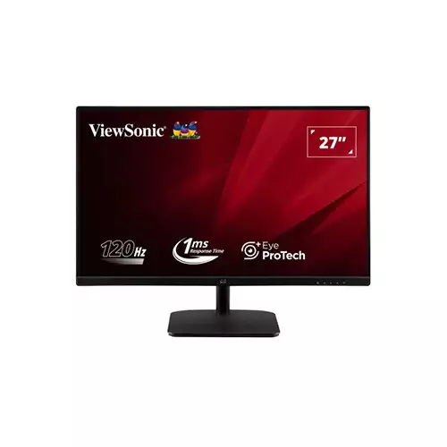 ViewSonic VA2732A-H 27 Inch 120Hz IPS FHD Monitor delivers crisp visuals and smooth performance for work and gaming.It features a 27-inch Full HD LED display with IPS panel technology.The monitor offers 178º wide viewing angles, ensuring clear images from any perspective.It supports 120Hz refresh rate and 1ms MPRT response time, perfect for fast motion content.Colors look vibrant with 16.7M colors, sRGB 109% coverage, and NTSC 77% size.The display includes anti-glare coating for long hours of comfortable viewing.It has a static contrast ratio of 1500:1 and dynamic contrast up to 50M:1.The monitor supports VGA and HDMI 1.4 ports, plus a 3.5mm audio out.Built-in features include Flicker-Free technology and Low Blue Light mode for eye protection.It consumes 26W typically, and 0.3W in standby, making it energy-efficient.The monitor weighs 4.1 kg with stand and 3.6 kg without, easy to mount or adjust.It supports tilt from -5º to 20º and standard 75 x 75 mm wall mount.