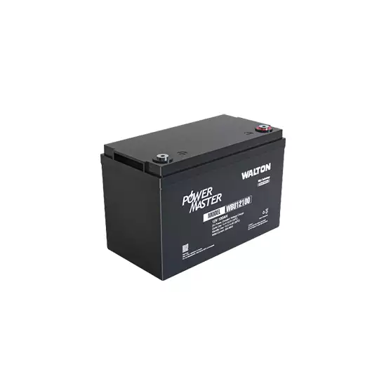 The Walton Power Master WBU12100 is a 12-volt, 100Ah sealed battery. It is designed to provide reliable power storage and backup for various applications, such as solar systems, UPS (Uninterruptible Power Supply) units, electric vehicles, and marine equipment. The battery features a sealed construction, which means it is maintenance-free and does not require frequent checking or refilling of electrolyte levels. This makes it convenient to use in different environments and reduces the risk of acid leaks or spills. With a capacity of 100Ah, the Walton Power Master WBU12100 offers a decent amount of energy storage, allowing it to provide sustained power over an extended period. This makes it suitable for applications that require continuous or intermittent power supply, such as camping, off-grid power setups, or emergency backup power. The battery utilizes advanced lead-acid technology, ensuring efficient energy storage and long cycle life. It is built with high-quality materials and designed to withstand deep discharges, vibrations, and extreme temperature conditions. The dimensions and weight of the Walton Power Master WBU12100 may vary, but typically it is designed to be compact and lightweight for easy installation and portability. It may come with built-in handles or carrying straps to facilitate transportation. When using the Walton Power Master WBU12100, it is essential to follow the manufacturer's instructions regarding charging, usage, and maintenance to optimize its performance and lifespan. Overall, the Walton Power Master WBU12100 12-volt, 100Ah sealed battery provides a reliable and efficient power storage solution for a range of applications, offering convenience, durability, and long-lasting performance. The large selection of WALTON POWER MASTER WBU12100 SEALED BATTERY available at Techland BD is well recognized.