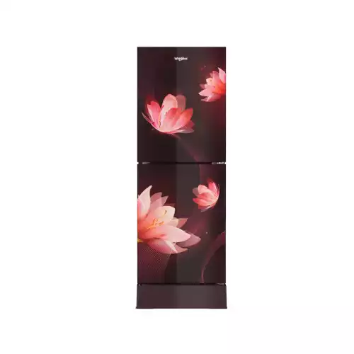 The Whirlpool Fresh Magic Pro 278L Florina Red Refrigerator is a stylish, energy-efficient, and feature-packed appliance designed to meet the everyday storage and cooling needs of modern families. With a total capacity of 278 liters, it offers ample space for storing vegetables, fruits, beverages, dairy, and frozen items, making it ideal for medium-sized households. This refrigerator is powered by Direct Cool technology, ensuring effective and consistent cooling performance while keeping electricity consumption manageable. It is equipped with an advanced MM1110Y inverter compressor, which operates efficiently even within a wide voltage range of 160-260V, ensuring durability and stable cooling during voltage fluctuations. With an annual power consumption of 507 kWh, it balances cooling power with energy efficiency, making it a smart long-term investment for your home. Aesthetically, the refrigerator stands out with its Florina Red glass body finish, giving your kitchen a modern and elegant look. Built with durable toughened glass shelves, it can safely hold heavy utensils and containers without risk of damage. The refrigerator includes an LED interior light, ensuring clear visibility even in low-light conditions, while the side extrusion door lock system adds an extra layer of safety. It also features a convenient icemaker bank, so you always have ice available when you need it. Inside, the storage is well-structured with 1 shelf in the freezer compartment and 1 shelf in the fridge compartment, allowing efficient organization of your items. Measuring 56.4 cm x 166.1 cm x 66.7 cm and weighing 55kg, it is perfectly sized to fit in most kitchens while providing maximum storage capacity. Built with modern inverter technology and a frost-type system, this refrigerator delivers long-lasting freshness and superior performance across different climate conditions. The toughened shelves ensure strength and durability, while the glass body makes cleaning easy and enhances its visual appeal. For additional reliability, Whirlpool backs this refrigerator with an impressive 10-year motor warranty and 2-year parts & service warranty, giving you confidence in its performance and longevity. Whether you are storing fresh produce, frozen foods, or chilled beverages, the Whirlpool Fresh Magic Pro 278L Florina Red Refrigerator is designed to meet all your needs with style, durability, and efficiency.
