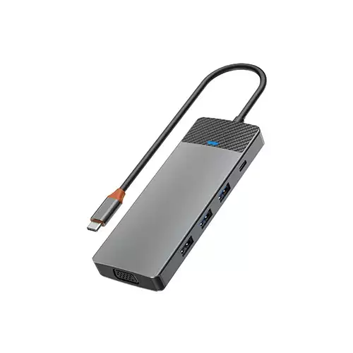 WiWU A921HV Linker 9-in-1 USB-C Hub is a compact, all-in-one expansion tool built for modern devices. Ideal for professionals, students, and creatives, it offers seamless connectivity wherever you work. With a sturdy aluminum alloy body in a stylish space gray finish, it enhances both function and aesthetics. This hub includes HDMI (up to 4K @ 30Hz) and VGA outputs, allowing support for dual displays. You also get 2 USB 3.0 ports for high-speed file transfers, 1 USB 2.0 for peripherals, a 100W USB-C PD charging port, and SD/TF card slots for easy media access. Whether you’re presenting, editing content, or managing a multitasking setup, the A921HV helps streamline your workflow. Lightweight yet durable, it’s easy to carry in a laptop bag and supports major operating systems, including Windows, macOS, Chrome OS, and Linux. Built with heat-dissipating aluminum and plug-and-play functionality, this hub is ready to keep up with your day.