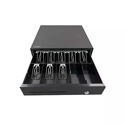 Xcash M405E 8 Bills & 2 Coins Cash Drawer is a premium, high-capacity cash management solution tailored for retail stores, supermarkets, restaurants, pharmacies, and POS counters. Designed to handle busy business environments, this sturdy cash drawer features 8 bill slots and 2 coin compartments, allowing easy organization of multiple currencies and quick access during peak hours. Its **3-position lock system—Lock, Manual, and Auto—**ensures enhanced security while offering operational flexibility for cashiers. Built with a robust metal construction, the Xcash M405E Cash Drawer guarantees durability and reliable performance even under heavy daily usage. The RJ12 interface allows seamless integration with a wide range of POS systems and receipt printers, providing a smooth and efficient checkout process. Its larger dimensions (410W x 415L x 100H mm) accommodate higher cash volumes while maintaining compactness for counter placement. Ideal for businesses seeking both security and efficiency, the Xcash M405E combines smooth sliding operation, reinforced build quality, and dependable connectivity, making it a perfect solution for modern retail and hospitality operations.