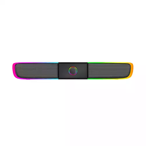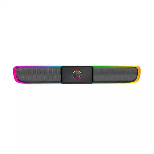 The Xtrike Me SK-600 is a stereo gaming speaker with two channels. It comes with a 52mm driver unit. This high-quality speaker is capable of producing clear and accurate sound. It's essentially a soundbar with a rated power of 2x 3W. It has three modes of RGB effects. It provides an attractive experience while playing. The Xtrike Me SK-600 has a touch control for turning on and off the backlight. It has a volume control that is easily accessible. It contains a 3.5 mm audio jack and a USB charging port. This soundbar does not require an extra power supply because it is USB powered. A one-year guarantee is included with the Xtrike Me SK-600.