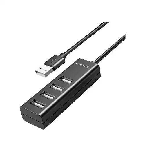 Yuanxin Type-C Male to Quad USB Female Hub in sleek black color is a versatile and practical accessory for expanding the connectivity options of your laptop or desktop computer. With a Type-C male input interface and four USB-A female output interfaces, this hub provides seamless connectivity for a variety of USB devices, offering enhanced functionality and convenience for your computing needs.This hub features a Type-C male input interface and four USB-A female output interfaces, allowing you to connect multiple USB devices simultaneously, such as keyboards, mice, external storage, and more.USB Quantity: With four USB-A female ports, this hub offers ample connectivity to accommodate various peripherals, making it an ideal solution for users with multiple USB devices.OS Compatibility: Compatible with a range of operating systems, including Windows 7, 8, 10, Mac OS, Linux, and Vista, ensuring broad compatibility across different platforms.Use For: Designed for use with laptops and desktop computers, this hub is suitable for individuals seeking to expand the connectivity options of their computing devices for improved productivity and versatility.Color: The sleek black color of the hub adds a modern and sophisticated touch to your computer setup, complementing various aesthetics.Warranty: Backed by a 1-year warranty, providing assurance of quality and reliability, offering peace of mind to the users.Versatile Connectivity: Whether you need to connect multiple peripherals, transfer data between devices, or simply expand the connectivity options of your computer, the Yuanxin Type-C Male to Quad USB Female Hub offers a reliable and efficient solution for a wide range of usage scenarios.Please note that the specific length of the hub is not provided in the available information. For precise dimensions, it is recommended to refer to the product details.