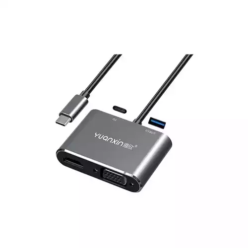 Yuanxin X-3402 Type-C Male to HDMI VGA USB & PD Female Converter Sliver