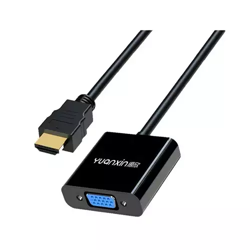 Yuanxin YHV-012 HDMI Male to VGA Female Black Converter offers seamless connectivity between devices with differing port types, providing versatility and ease of use.One end boasts an HDMI Male port, while the other features a VGA Female port, enabling the connection of HDMI devices to VGA displays. Supporting Full High Definition (FHD) resolution (1920 x 1080), it ensures vivid and detailed visuals.This converter operates with a DC 5V power supply and is widely compatible with both HDMI Female and VGA Male devices. Its compatibility extends across various operating systems, including Windows, Mac OS, and Linux, ensuring broad usability.Measuring 0.15 meters in length and presented in sleek black, this converter is designed with both functionality and aesthetics in mind. Additionally, it comes with a 1-year warranty, reflecting the product's quality and reliability.