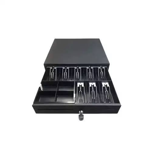 The Yumite EY400AH is built with practicality and durability in mind. It features an RJ11 interface, making it compatible with most point-of-sale systems. The tray is thoughtfully divided into 8 grids for paper money and 4 grids for coins, allowing for organized and efficient cash storage. The shell of the drawer is constructed from a cold steel plate, providing enhanced security, while the drawer itself is made from high-quality ABS material. The steel wire fold adds another layer of durability, ensuring that the cash drawer can withstand the rigors of daily use.