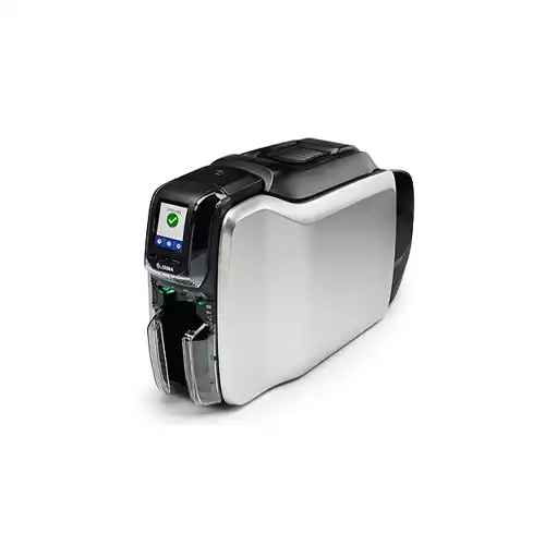 The ZC300 Single-Sided Card Printer from Zebra is a straightforward card printer designed for printing identity, membership, and credit/debit cards. It features integrated USB/Ethernet connectivity for standalone printing. The printer allows you to print up to 200 YMCKO cards per hour and up to 900 monochrome cards in the same timeframe. The printing standards include a 300 dpi resolution and a 1006 x 640 pixel image size. You can auto-calibrate the ribbons and can choose any of the Zebra genuine ribbons, which are authenticated by the printer.