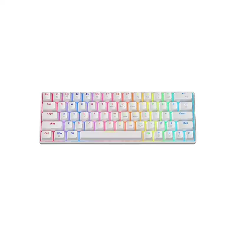 The ZIFRIEND ZA646 Mechanical Keyboard in an elegant white design, a game-changer now available at TechLand BD. With a standard layout featuring 64 keys, this keyboard strikes the perfect balance between compactness and functionality, making it an ideal choice for both gamers and professionals. The distinctive Tri-Tone Keycaps not only add a touch of style but also ensure durability for extended use. Dive into a world of vibrant customization with 12 kinds of backlit effects, creating the perfect ambiance for your workspace or gaming station. Designed for convenience and versatility, the ZA646 boasts a 1.5M PVC wire that is both sturdy and detachable, allowing you to customize your setup effortlessly. The hot-swappable feature adds another layer of flexibility, enabling users to tailor their typing experience by experimenting with different switch types. With N-keys rollover and a Type C detachable connection, this keyboard ensures accurate and seamless performance, catering to the demands of fast typists and gamers alike. Built to withstand the test of time, the ZA646 guarantees more than 50 million keystrokes, ensuring longevity and reliability. The ABS injection for the cover and bottom shell, along with a support tripod and silicone non-slip feet mat, provides a stable and durable foundation for your typing sessions. The keyboard is equipped with Blue/Red switch types, allowing users to choose their preferred tactile feedback. To add to the appeal, the ZIFRIEND ZA646 comes with a 1-year warranty, providing users with peace of mind and assurance of product quality. Elevate your typing experience with this mechanical marvel, blending innovation, style, and durability. Make the ZA646 your go-to keyboard for a seamless and enjoyable typing journey, available now at TechLand BD.| Keyboard | |