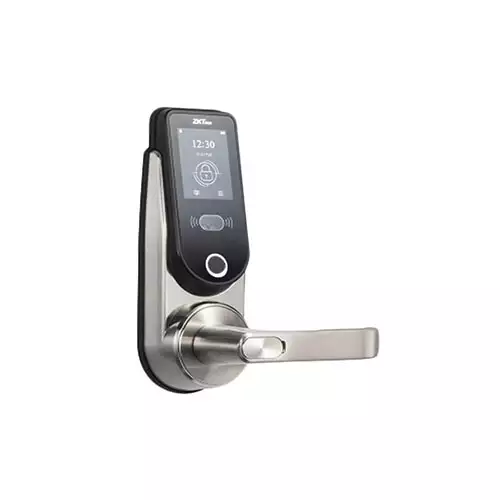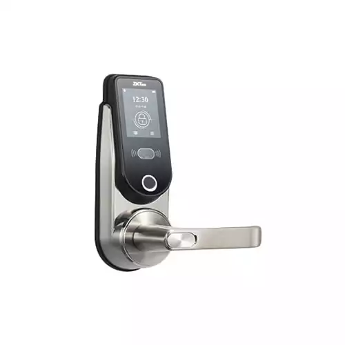 The ZKTeco HBL100 Hybrid Biometric Lock with Wireless Connection is a modern smart door lock that delivers strong security and everyday convenience for both homes and offices. Crafted with a durable zinc alloy body, it offers multiple access methods, including facial recognition, high-accuracy fingerprint scanning, and MIFARE card authentication, allowing users to choose the most convenient and secure way to enter. The lock features wireless connectivity through BLE 4.0 and Zigbee, enabling easy control and user management via compatible mobile apps and smart home platforms. A 2.8-inch touchscreen display provides clear visibility and simple operation, while built-in security alarms and lockout protection help prevent unauthorized access. The HBL100 supports up to 100 user profiles, making it suitable for families, offices, and small commercial spaces. It is powered by a rechargeable lithium battery with support for standard AA batteries as backup, ensuring reliable performance even during power interruptions. Designed to fit standard door thicknesses, the ZKTeco HBL100 integrates seamlessly into modern interiors, delivering a balanced combination of advanced security, durability, and smart connectivity.
