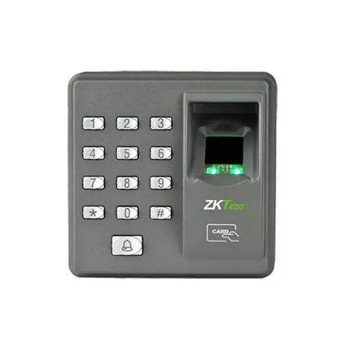 The ZKTeco X7 comes with a fingerprint capacity of 500 templates and supports up to 500 card entries. It utilizes the ZK Optical Sensor for accurate and fast biometric recognition. The terminal interfaces with 3rd party electric locks, door sensors, exit buttons, alarms, and doorbells, making it versatile for different access control setups. The device operates effectively within a temperature range of 0°C to 45°C and has a compact size of 88 x 88 x 33.6 mm, making it suitable for both residential and commercial use.