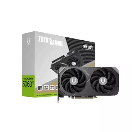 The ZOTAC GAMING GeForce RTX 5060 Ti Twin Edge OC 8GB GDDR7 Graphics Card brings high-end graphics performance to mainstream gamers and creators. Powered by NVIDIA’s next-gen Blackwell architecture and equipped with the latest GDDR7 memory, this card delivers blazing-fast performance in a compact dual-slot form. With cutting-edge cooling, support for 8K displays, and next-gen AI capabilities via DLSS 4, it's the perfect upgrade for those wanting to future-proof their gaming or productivity setup without breaking the bank.