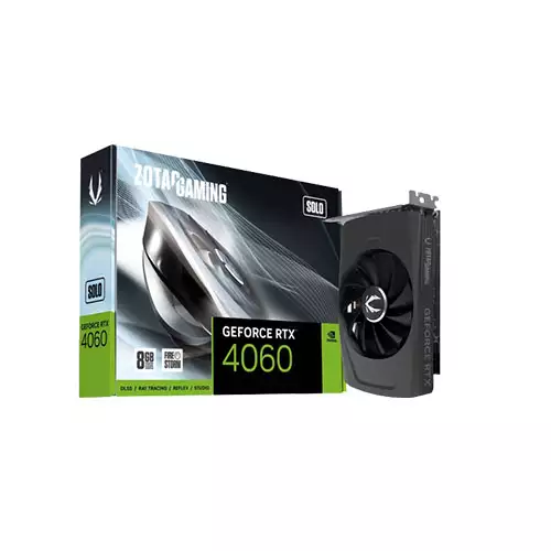 The ZOTAC GAMING GeForce RTX 4060 8GB SOLO, the ultimate graphics card for compact gaming rigs in Bangladesh's techland. With its cutting-edge NVIDIA Ada Lovelace architecture and impressive features, this ultra-compact powerhouse delivers an unrivaled gaming experience at an affordable price. The ZOTAC GAMING GeForce RTX 4060 8GB SOLO boasts the latest NVIDIA DLSS 3 technology, allowing you to experience ultra-realistic graphics and incredibly smooth framerates. Harnessing the power of the Ada Lovelace architecture, this graphics card brings exceptional performance and efficiency to your gaming sessions. Measuring just 163mm/6.4" in length and featuring a 2-slot footprint, the ZOTAC GAMING GeForce RTX 4060 8GB SOLO is designed to fit seamlessly into 99% of PC cases, making it ideal for small form factor (SFF) builds. Its compact design doesn't compromise on power, as it supports full ray tracing capabilities, enhancing the visual fidelity of your games. Equipped with an 8-pin PCIe power connector, this graphics card ensures stable and reliable power delivery to meet your gaming demands. Whether you're playing the latest AAA titles or creating content, the ZOTAC GAMING GeForce RTX 4060 8GB SOLO delivers outstanding performance without compromising on space. In Bangladesh's techland, finding the best price for high-quality tech products is essential. The ZOTAC GAMING GeForce RTX 4060 8GB SOLO offers excellent value for money, providing exceptional gaming performance at an affordable price point. Upgrade your gaming experience today and immerse yourself in the world of stunning visuals and smooth gameplay with the ZOTAC GAMING GeForce RTX 4060 8GB SOLO.
